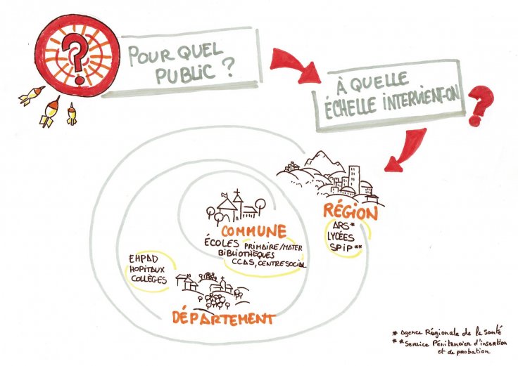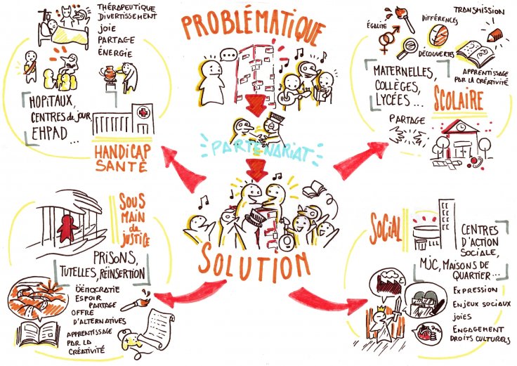 - Avoir en tête la chaîne de solidarité inter-sectorielle et être à l’écoute de son territoire. Les Actions Culturelles permettent d’apporter une respiration dans des espaces où le besoin se fait sentir (à l’école, dans l’EHPAD, etc.).